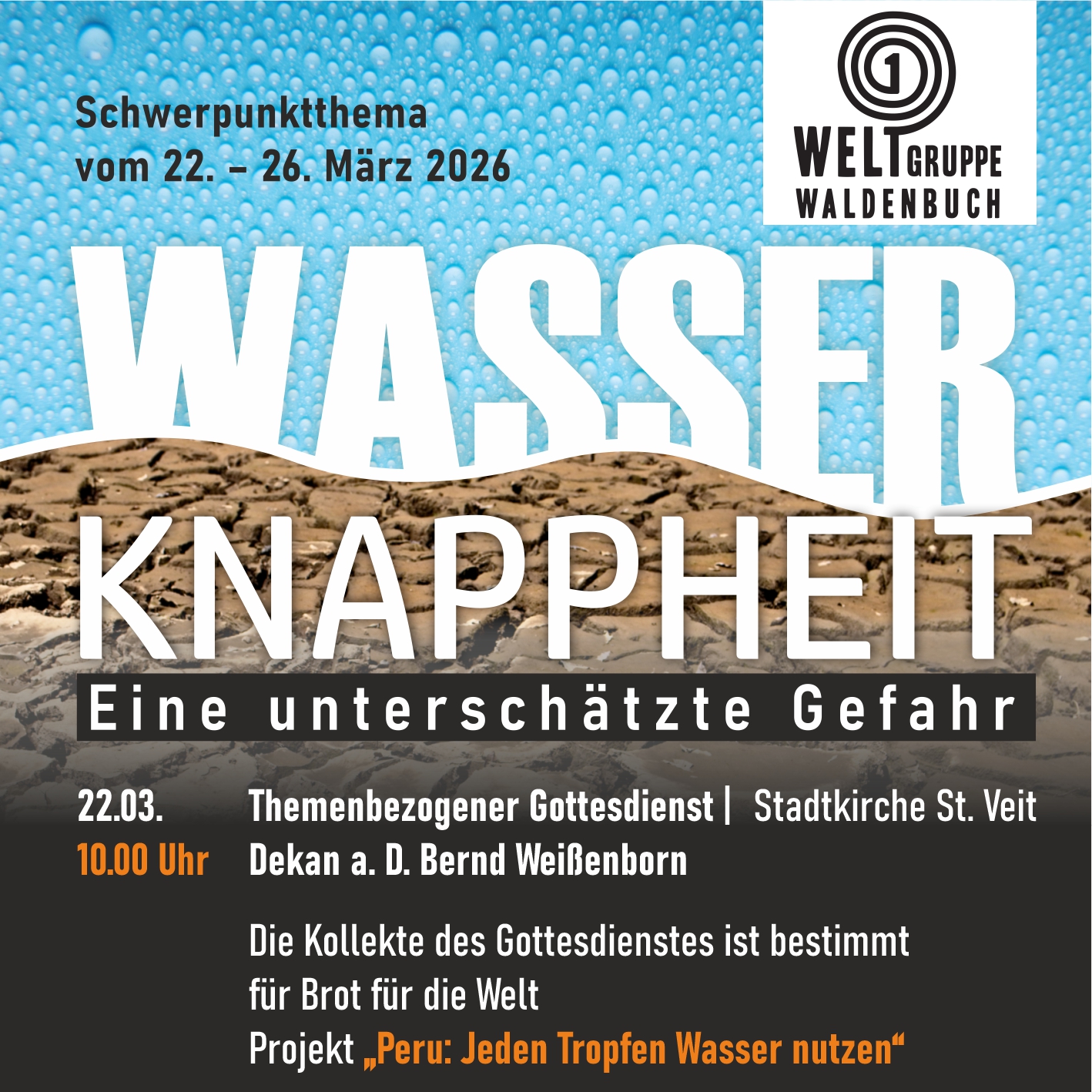 Wir starten in das Thema “Wasserknappheit weltweit – eine unterschätzte Gefahr“ mit dem Eröffnungsgottesdienst, den Dekan a. D. Bernd Weißenborn hält.