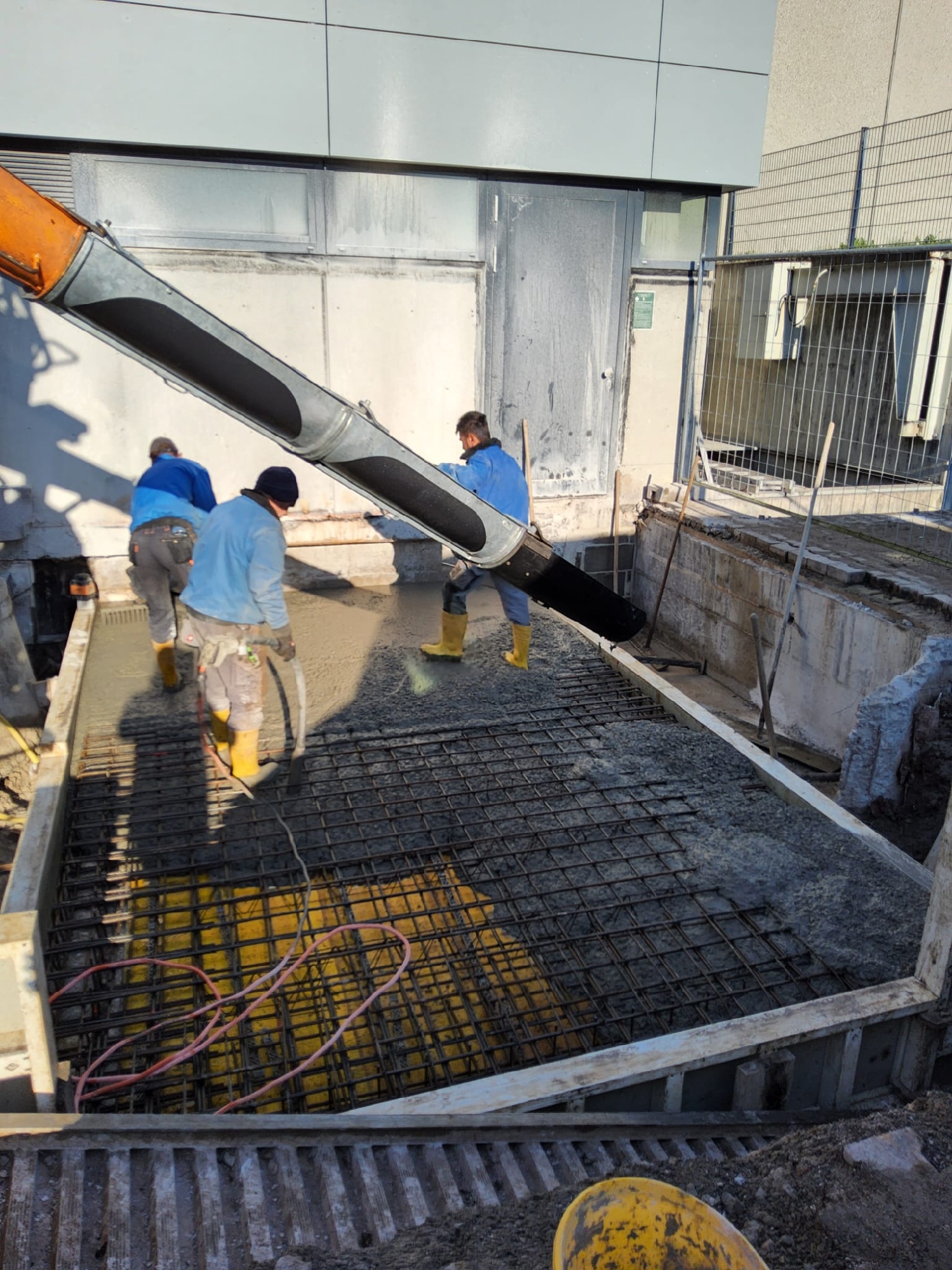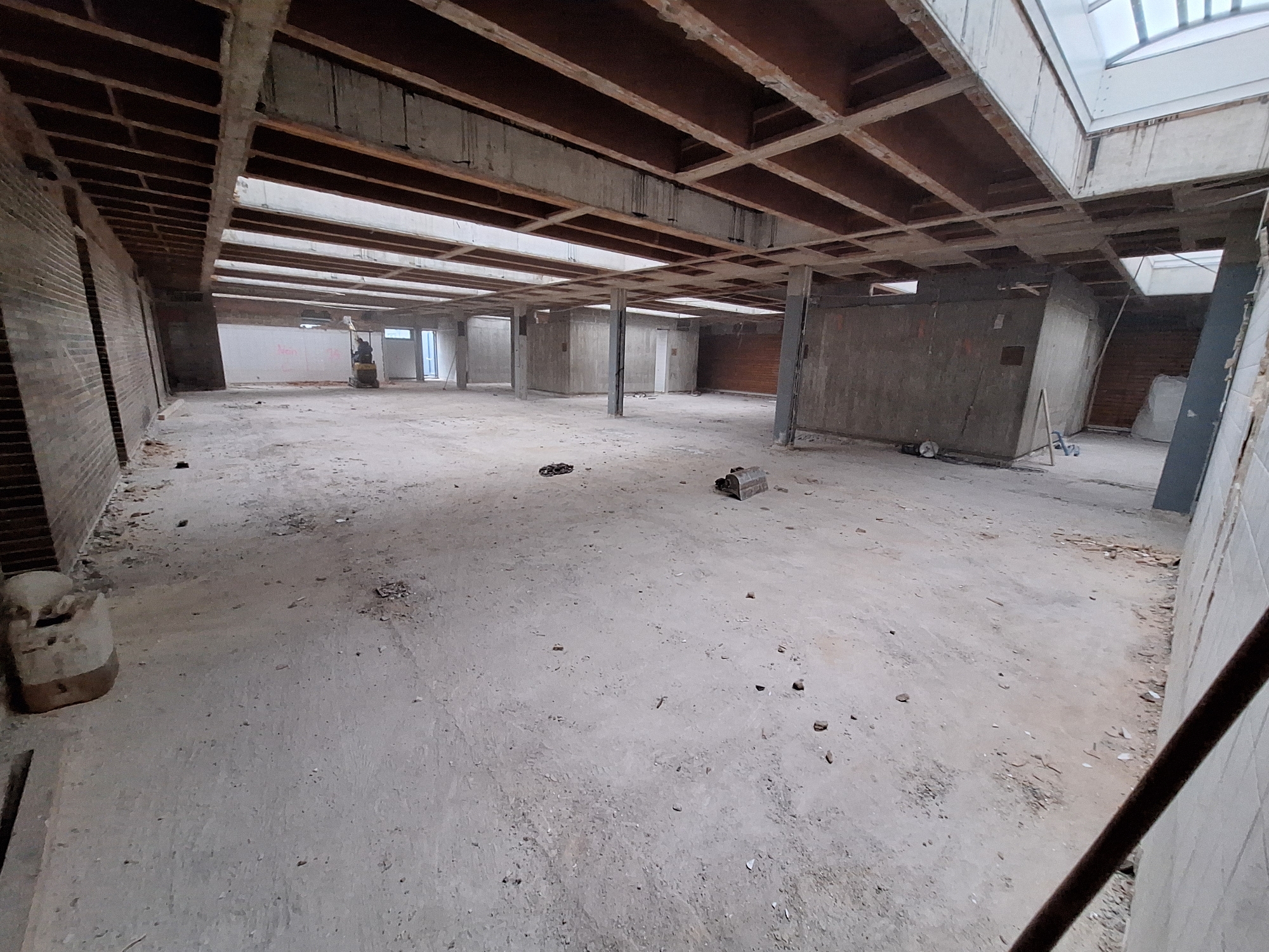 In der Woche wurden in der Technik alle Lüftungsgeräte ausgebaut. Außerdem wurden im kompletten Technikbereich alle Ummantelungen der Wasserleitungen abgebaut und sorgfältig getrennt. Im Gebäude wurden viele Kernlochbohrungen und Türöffnungen geschnitten. Der Abbau der Außenfassade ist fast abgeschlossen. Zu guter Letzt wurde die Decke vom alten Kaminraum mit Beton verschlossen.