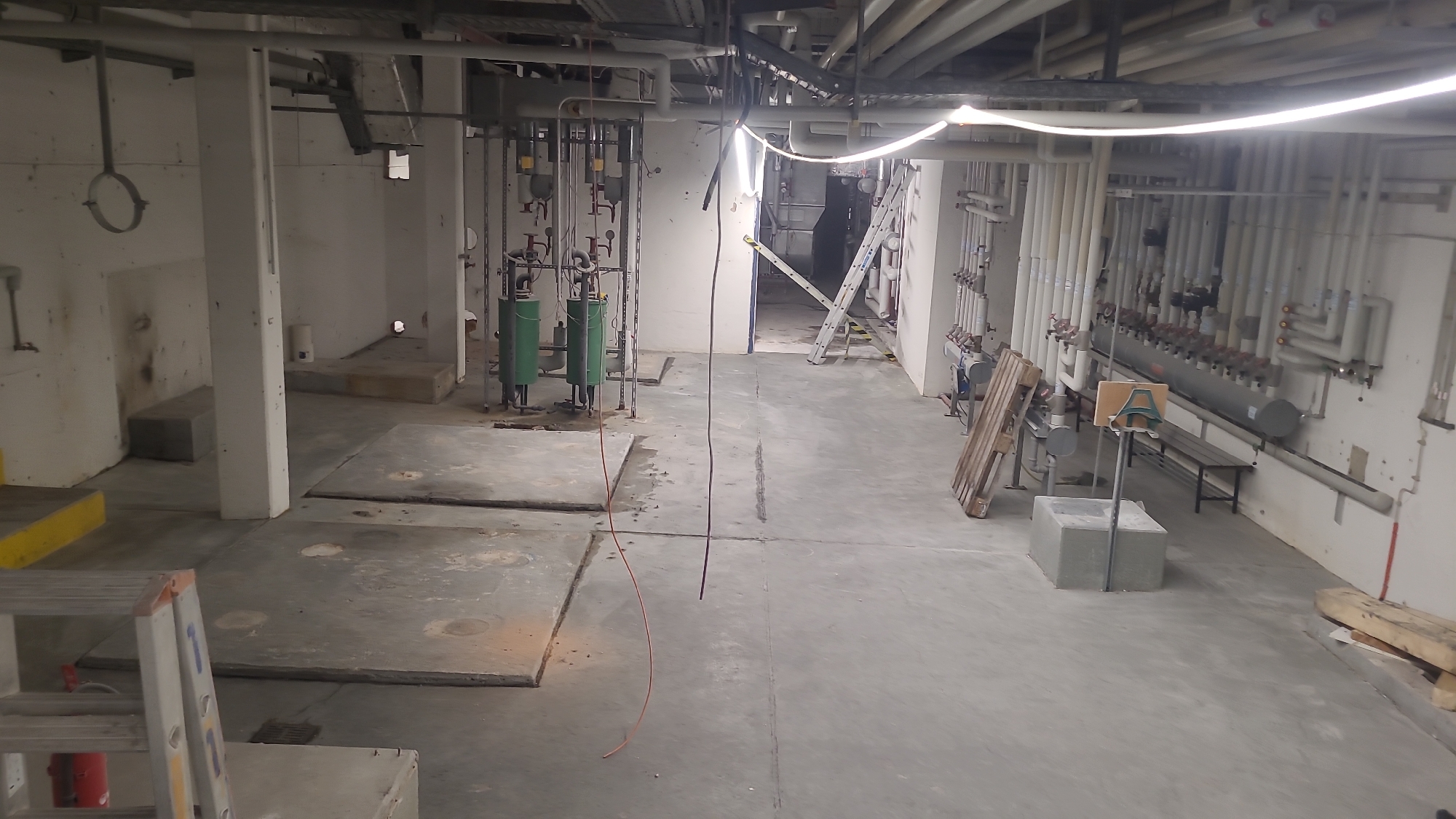 In der Woche wurde in der Technik weiterhin Kabel und Rohre ausgebaut. Im Gebäude wurden weiter viele Kernlochbohrungen und Türöffnungen geschnitten. Der Boden vom alten Kinderbecken wurde abgebrochen.