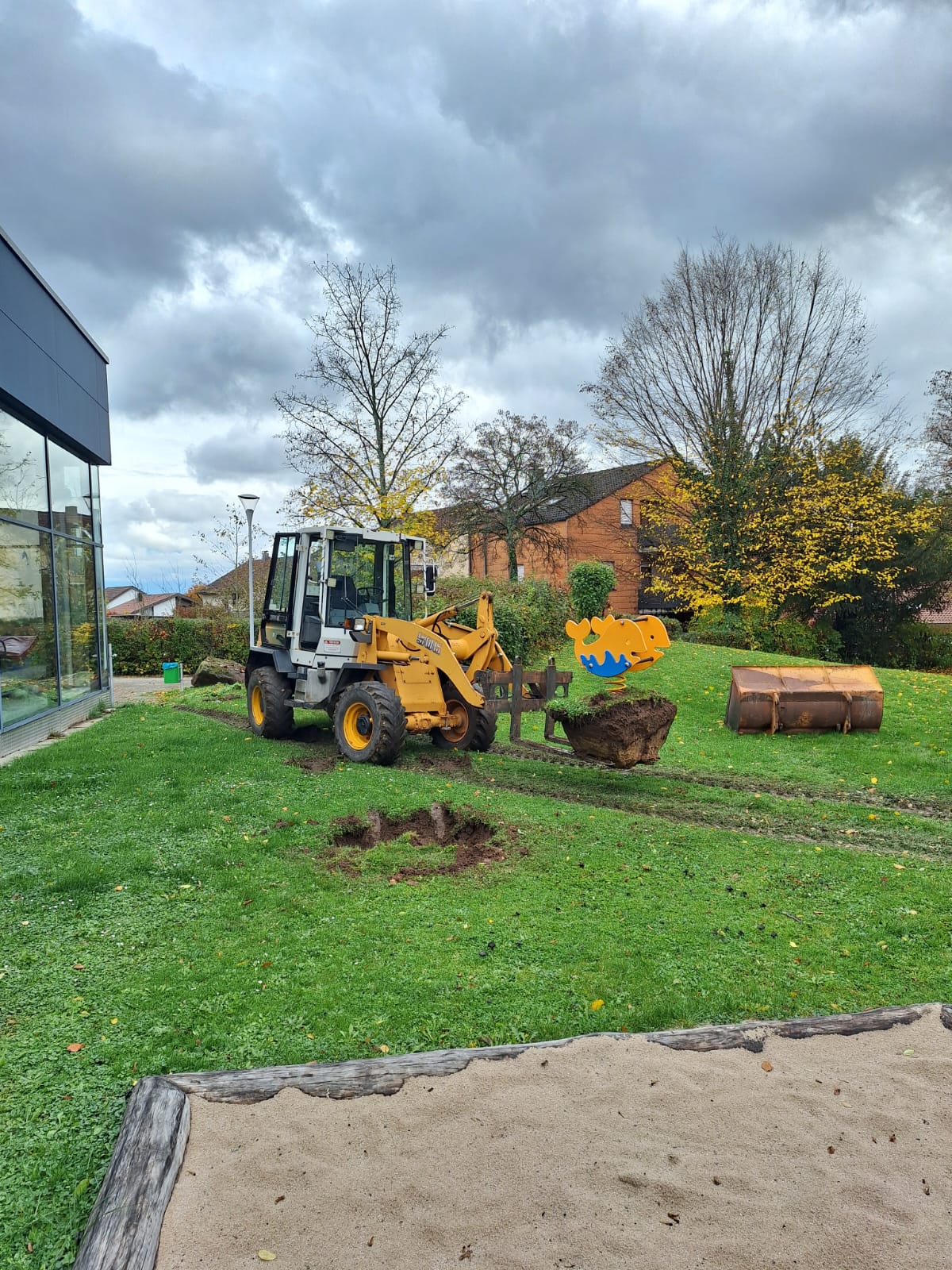 In der Woche wurden auch die ersten Arbeiten im Garten vorgenommen. Ein Stück Zaun und der Sandkasten musste weg. Die Hütte wurde nach hinten in den Garten versetzt und das Spielgerät wurde abgebaut und kommt an eine andere Stelle in der Stadt.