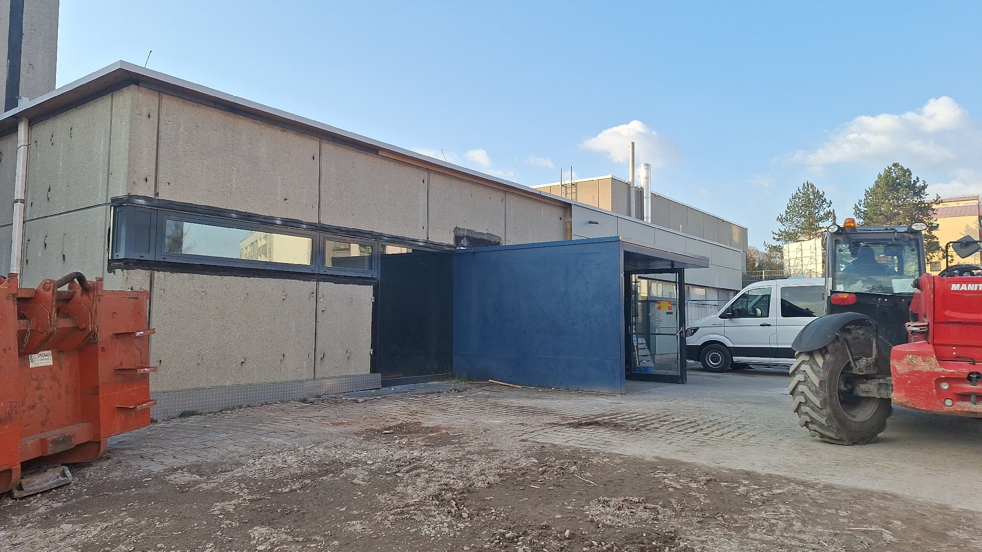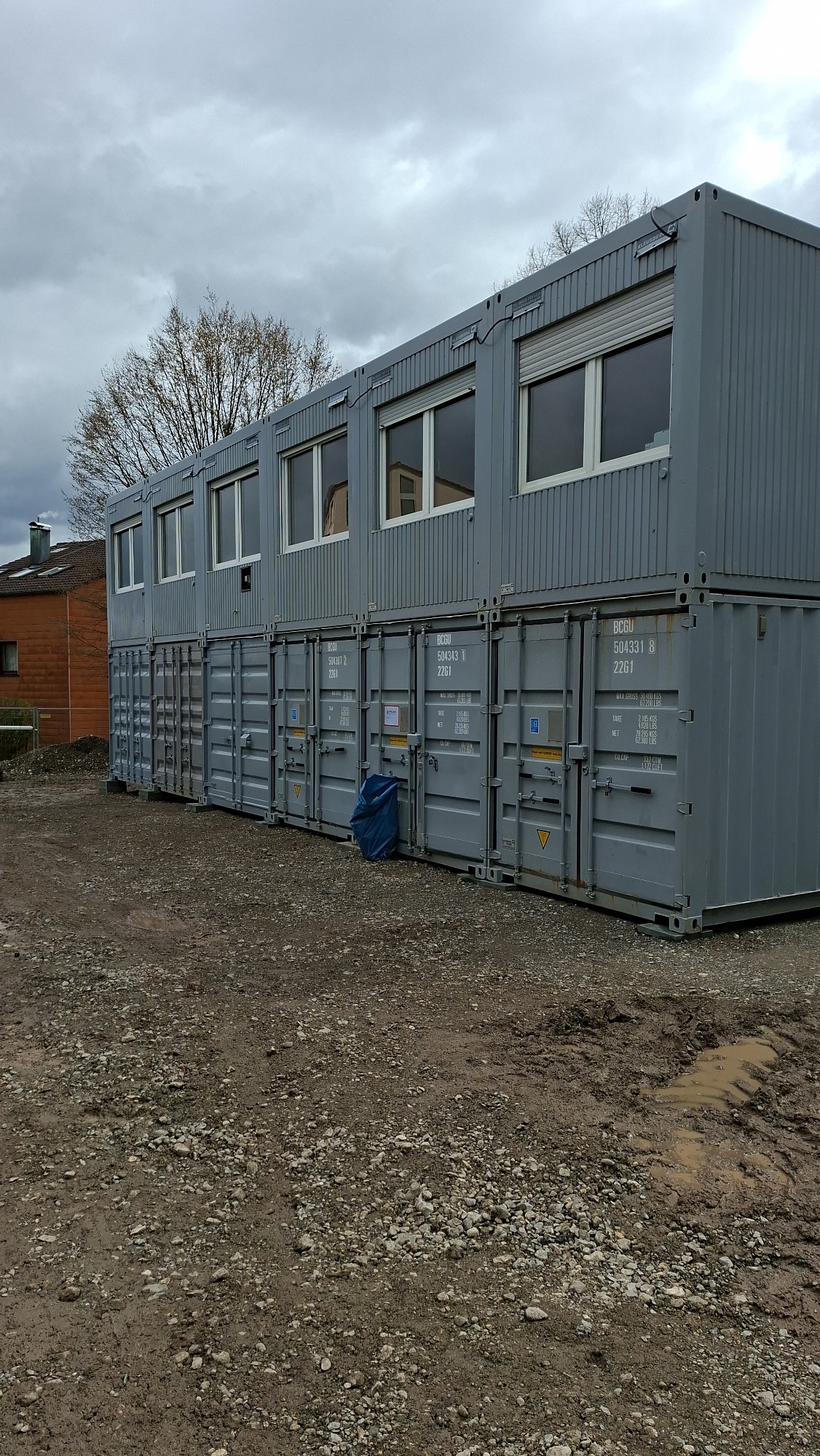 In der Woche wurden Vorbereitungsarbeiten für die Abrissfirma gemacht. Dann wurden noch die Übergangscontainer für die Turnhalle mit Umkleiden- und Sanitärbereichen geliefert.